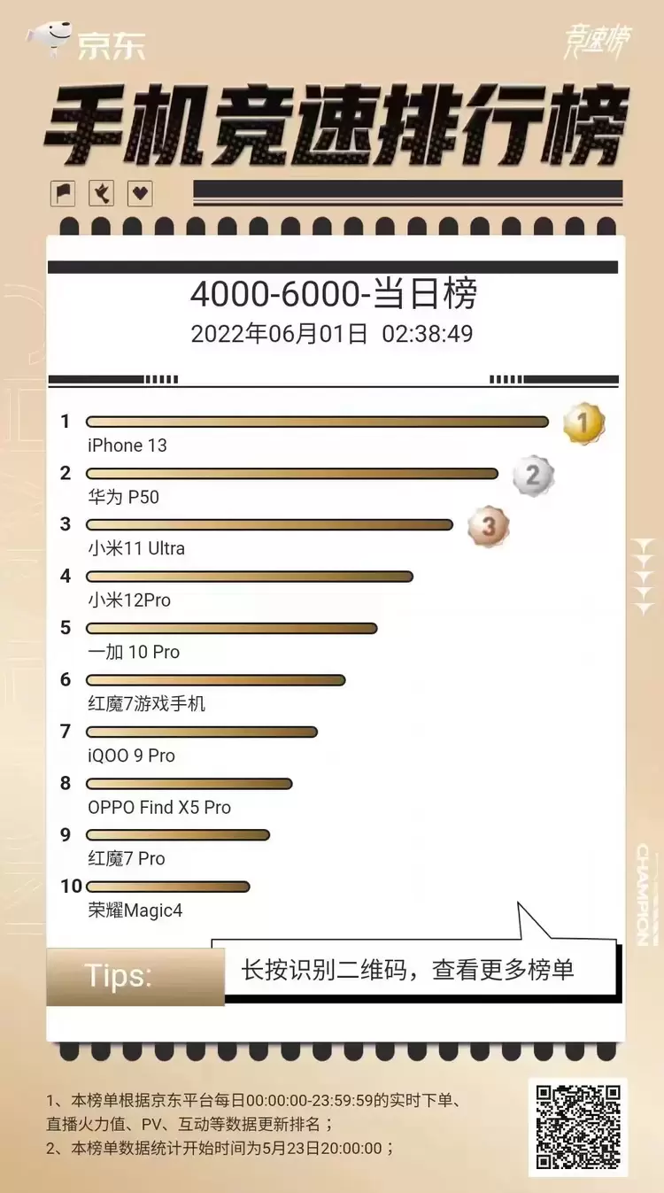 而无独有偶,在京东新发布的手机竞速排行榜中,红魔7游戏手机系列成功超越一众游戏手机,高居排行榜第一和第三,成功抢占京东游戏手机前三中的两个席位,形成了碾压优势,市场受欢迎度空前高涨,游戏手机的专业实力再次凸显。