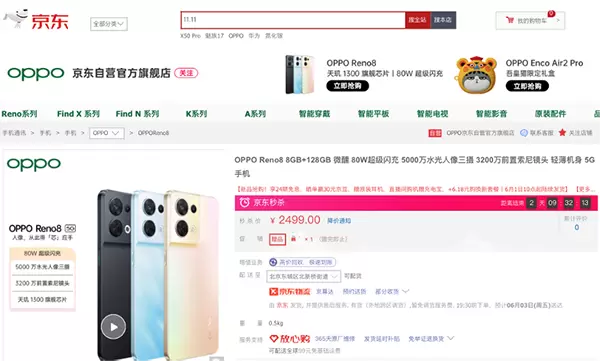 先来看看最近开售的新款OPPO Reno8,搭载天玑1300旗舰芯片,使用非常流畅。内置4500mAh电池,支持80W超级闪充,续航无忧,支持长时间拍照与视频不掉线。影像方面,该手机使用OPPO与索尼联合设计的IMX709超感光猫眼镜头,在硬件上提升了拍照效果。5000万水光人像三摄,搭配动态抓拍引擎,完美记录孩子跑跳玩乐的瞬间。京东618到手价2499元起,享24期免息。