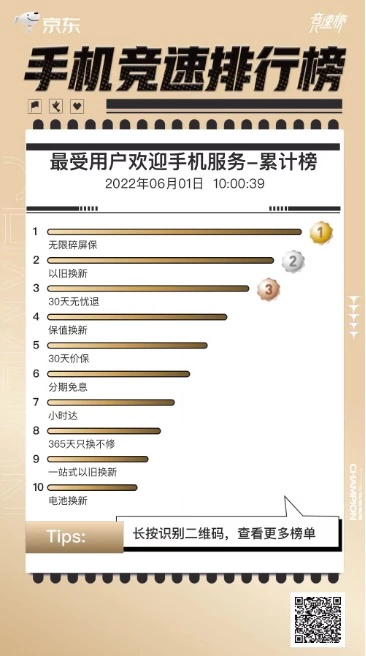 今年618期间,京东手机给大家带来了无限碎屏保低至69元起、以旧换新至高补贴1540元、30天价保、365天只换不修等全链路服务,受到了消费者的广泛青睐。根据京东手机排行榜最受用户欢迎手机服务累计榜显示,无限碎屏保服务最受消费者欢迎,其次是以旧换新、30天无忧退、保值换新、分期免息等等服务。