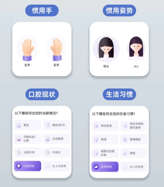 当牙齿出现溃疡出血等疼痛问题时,可以根据口腔变化更新刷牙方案,若用户对刷牙时长、力度强弱等清洁模式设置不够满意,则可通过 App 进行自定义选择和搭配,当情况有所好转后,牙刷自动调节成日常清洁频率和力度,完成定制化保姆级口腔护理。