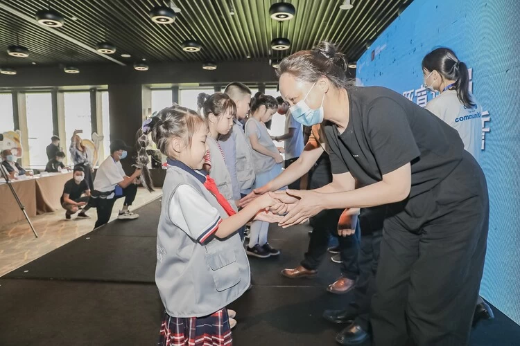 现场还开展了小江豚宣讲员授勋活动,为小江豚宣讲员授予队服。小宣讲员们庄严宣誓。现场一位四岁的小江豚宣讲员棉棉小朋友告诉大家:等她长大,要成为中科院水生所的研究生,和江豚专家一起研究和保护好江豚。