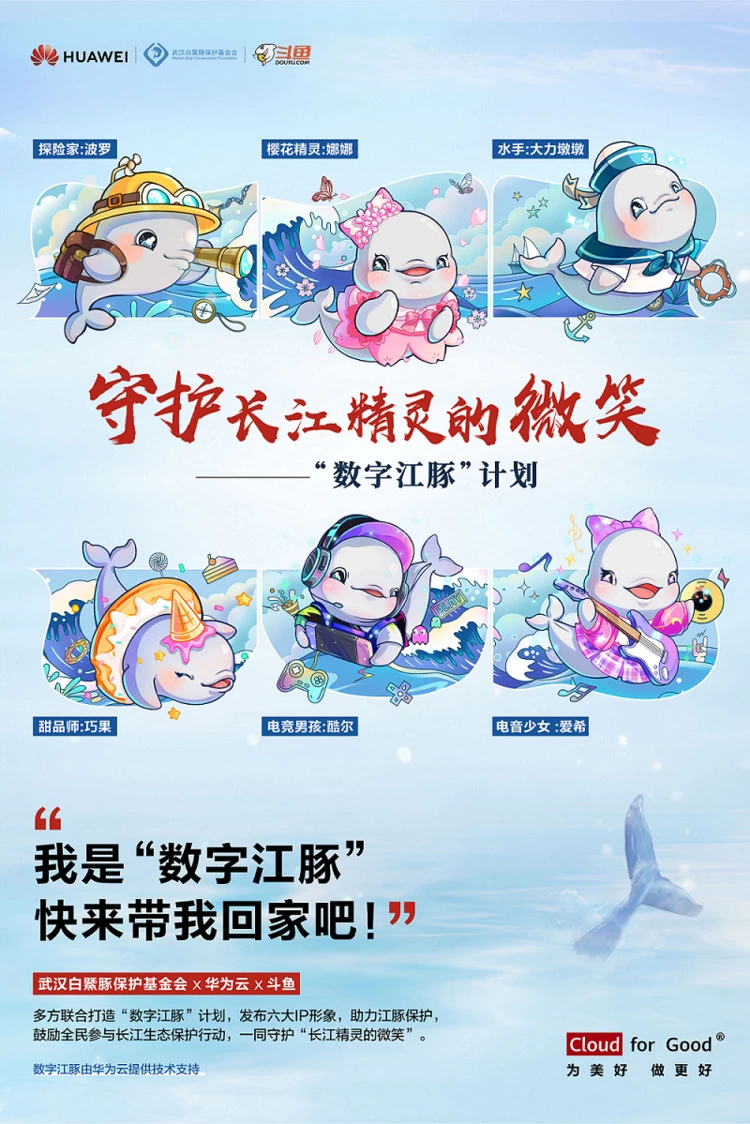 为积极号召全民参与长江生态保护行动,由武汉白鱀豚保护基金会联合华为云、斗鱼、武汉云共同打造的江豚保护项目“数字江豚”正式上线。华为云通过领先的区块链技术,助力斗鱼实现数字江豚极速生成,快速上链、存证、流转,帮助“数字江豚”打造为一个社会互动、人人参与的线上平台,进一步提升公众对长江江豚的认知度。广大爱豚人士和市民将可在线上领取并认养专属的“数字江豚”,还可通过此相关小程序、网页观看江豚直播及江豚主题展。此项目将为长江江豚保护和长江大保护探索“线上途径”。本次“爱豚月”活动也在斗鱼、长江网等平台进行了线上直播。