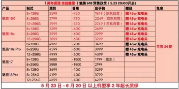 并且,魅族科技为了更好回馈众多用户,魅族618两年质保,预售福利来袭:今日20:00起,购机享2年质保,至高立省700元,享24期免息!5月31日前购魅族18X、魅族18s系列赠45W超充适配器。更多直播福利、会员活动、以旧换新等专属权益请关注魅族商城、魅族专卖店及各大电商平台!