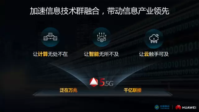 通过泛在万兆的5.5G网络,支撑计算、云、人工智能等信息技术跨领域、全方位、多层次的产业深度融合。信息技术自身的发展在加速,融合也在加速。我们要进一步发挥5.5G网络优势,加速信息产业技术融合,让计算无处不在、让智能无所不及、让云触手可及,全面提升信息产业的自主创新能力,带动信息产业全面领先。