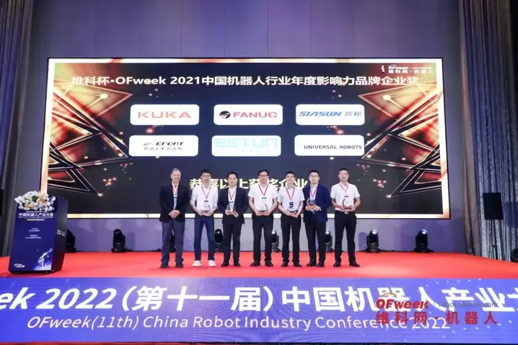 荣获“维科杯·OFweek 2021中国机器人行业年度影响力品牌企业奖”的企业分别是埃斯顿、新松机器人、优傲机器人、上海发那科、库卡机器人、埃夫特。