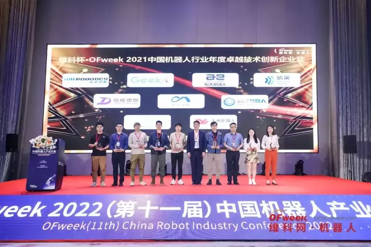 荣获“维科杯·OFweek 2021中国机器人行业年度卓越技术创新企业奖”的企业分别是未来机器人、配天机器人、清能德创、易行机器人、海柔创新、极智嘉、非夕科技、程天科技、磅客策。