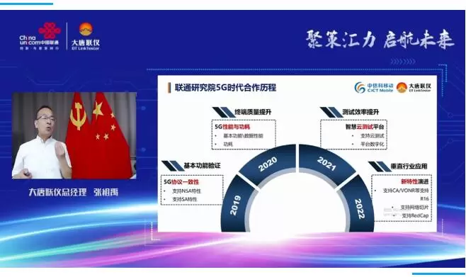 最后,张祖禹表示,大唐联仪作为中国联通泛终端技术生态创新联合实验室的成员单位,将继续发挥自身的产业优势,同中国联通集体研究院在B5G、6G等方面进一步开展深入的科技创新合作,不断推进终端测试标准化、产业化,携手探索终端测试技术的生态创新。