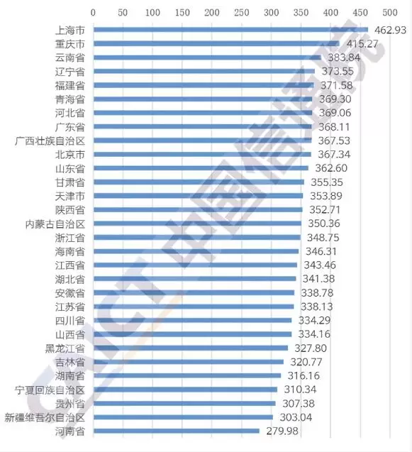 2022年Q1各省(自治区、直辖市)5G网络平均下行接入速率(单位:Mbps)
