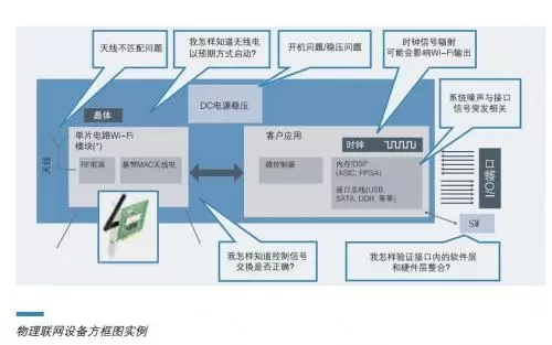 在混合信号设备在设计和调试过程中会遇到各种各样的问题,比如天线不匹配、开机是否稳定、怎样知道控制信号是否正确等等。通过下面的这张图就可以看出各种问题了。
