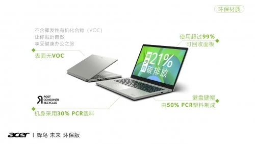 宏碁可持续发展的理念支持自身成长的同时也在影响着员工及行业伙伴,始于宏碁“Projecthumanity”减碳行动的Earthion地球任务平台意在通过集结各方伙伴共同面对环境问题,同时基于该平台推出未来环保版产品线,蜂鸟 · 未来环保版、蜂鸟 · 未来国家地理环保联名版、以及在宏碁2022年全球春季新品发布会首次亮相的未来环保版一体机及周边和服饰等产品,无不展现着宏碁践行环保的坚决和诚意。