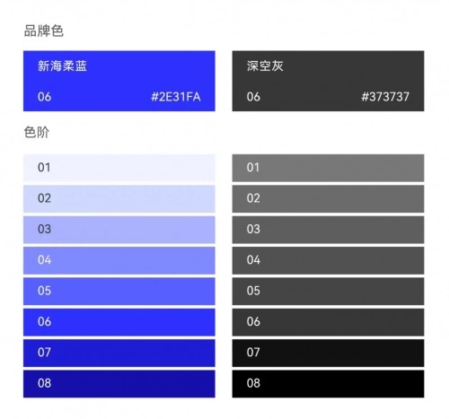 海柔创新的品牌主色选用新海柔蓝,蓝色是天空,是水,是空气,是深度和无限,是自由和生命,蓝色是宇宙最本质的颜色。同时搭配全新的深空灰,代表技术的专业能力,沉稳、内敛、低调简约,且包容万物。