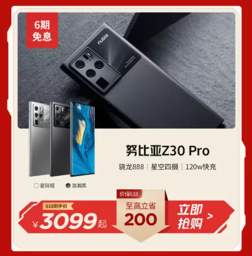 值得一提的是,除了游戏手机之外,努比亚Z30 Pro也参与到了本次活动之中,并且给出了200元的优惠购活动,售价3099元起。简单的来说,它是一款影像期间,配备了出色的影像系统,不仅配备了三颗6400万的后置镜头,而且还搭载了一颗800万超变焦潜望镜头,支持35mm等效焦段、最高50倍混合变焦等,能够轻松满足我们日常生活中各个场景的拍摄需求,而且加上努比亚特有星轨叠加技术的调教,还可以让我们更好的记录下美丽的星空,留下令人惊艳的摄影作品。