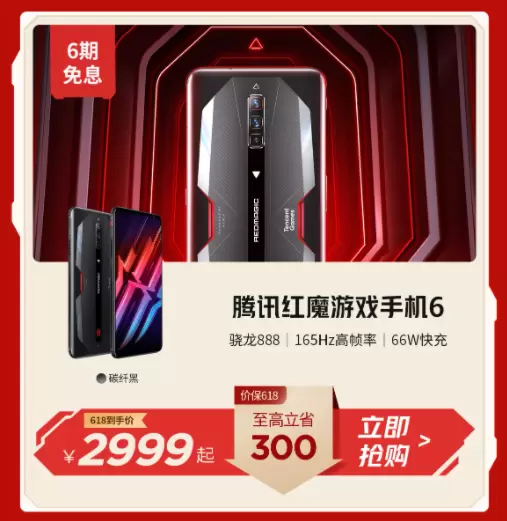 此外,去年红魔发布的主打旗舰红魔6游戏手机也给出了保价618、直降300元的优惠活动,到手价仅需2999元起。据了解,红魔6游戏手机搭载了高通骁龙888芯片、满血版LPDDR5内存、ICE 6.0多维散热系统以及业内首款165Hz高刷屏幕等,硬件配置硬核。同时,在软件层面,红魔6游戏手机还和腾讯游戏牵手,使得它拥有了红魔Arc Reactor性能引擎+腾讯Solar Core游戏引擎联合调校的双BUFF加持,并且还对多款腾讯游戏进行了高刷适配,甚至最高可以在165FPS模式下游戏,是红魔7系列之外,又一非常值得入手的高性能游戏旗舰。