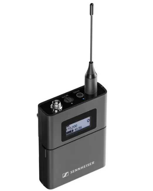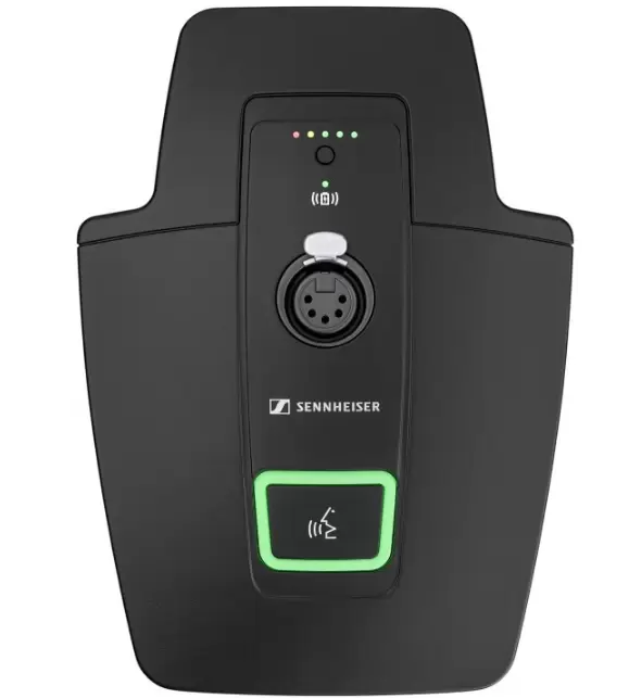腰包式接收机有 3 针或 3.5 mm (1/4”) 插口连接器,可连接所有兼容数字发射机的森海塞尔领夹式和头戴式麦克风、Neumann 诺音曼微型夹式麦克风以及乐器线。这款腰包式麦克风配备可编程静音开关,并为吉他手和贝斯手提供了模拟线缆功能。