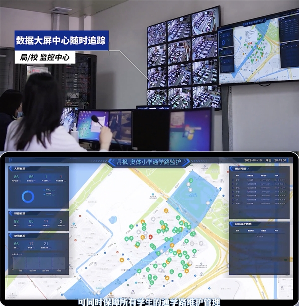 同时,“云看护系统”的终端还与通学路沿线的监控、社区综合治理中心连接,一旦发生紧急情况,就可以第一时间查看孩子的去向。一图定位,所有设备使用情况、学生位置分布一目了然。SOS、电子围栏出入等情况实时预警,并伴有同步紧急提示音,防止漏看。