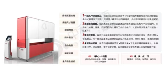 在工业视觉领域,打造一站式AI智能解决方案,从定位、检测、测量、识别、引导、监管多方向辅助工业自动生产,赋予传统电气自动化控制难以解决的环节,自行观测、思考、理解、判断以及控制的能力。同时结合云计算、物联网和5G等技术设施建设的逐步完善,搭建工业智能基础软件平台,以工业视觉应用开发平台、工业智能分析平台为基础,面向工业生产制造环节,融合多维数据,提炼价值信息,以工业视觉检测为基础,面向企业生产质量优化服务,实现企业“决策智能、灵活联动、集中管理”的目标。