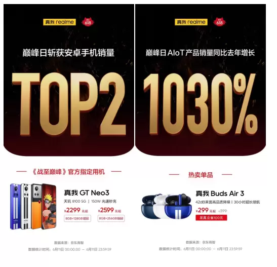 真我realme 618品牌巅峰日喜报传来 斩获安卓品牌销量TOP2