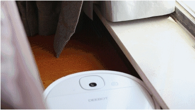 当遇到障碍物时,机器人会减速进行轻微碰撞,判断是否为真的“障碍”,如果是窗帘则可正常通过,减少清洁死角
