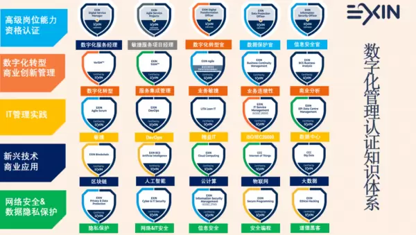 EXIN是一家面向全球ICT和数字化管理者的中立认证考试机构,是欧盟数字化人才能力标准e-CF的参编单位,也是国际数字化能力基金会的发起机构,该基金会整合全球数百位专家历时两年打造VeriSM™数字化转型与创新管理体系,探寻数字化转型的定义,同时为企业数字化转型提供理论框架、指导原则、管理模型和实践案例。