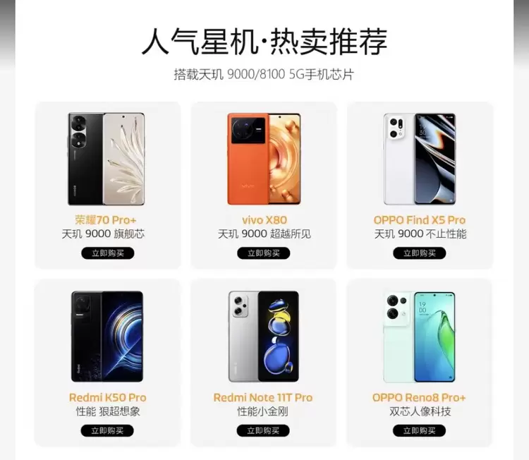 同时,各大手机厂商也积极与联发科天玑芯片开展合作,目前OPPO、vivo、小米、荣耀等手机厂商均已发售搭载天玑9000、天玑8000系列芯片的手机终端,且都是目前市面上的热门爆款,广受用户好评。