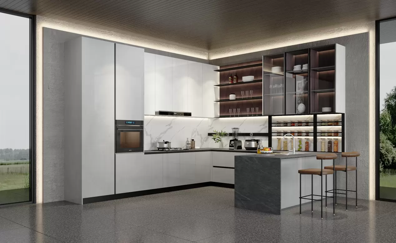 海尔全屋家居采用澳大利亚原装进口铝锭,德国进口PERTER漆浆,高清防爆钢化玻璃,共同组成的银河灰铝框玻璃门,以温润的触感打开岁月的画卷,在藏与露中,讲述光阴的故事,传递质朴的情感。
