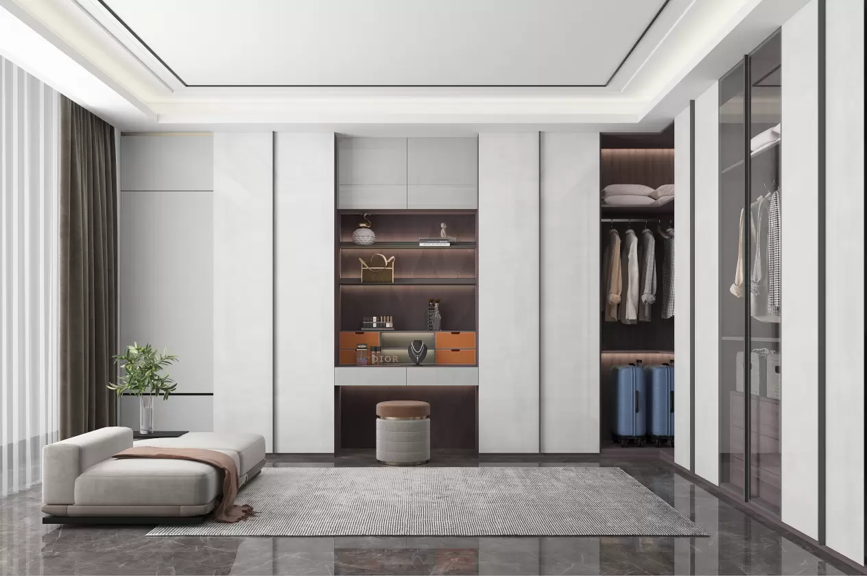 海尔全屋家居H507P云端系列,采用家居家电融合的方式,设计中提前嵌入海尔、卡萨帝等电器产品,将其完美融于场景之中,使得家电存在的突兀感消失,空间整体性提升,彰显融合之美。且在设计上前置家电使用需求,让家居功能布局更加合理且人性化。