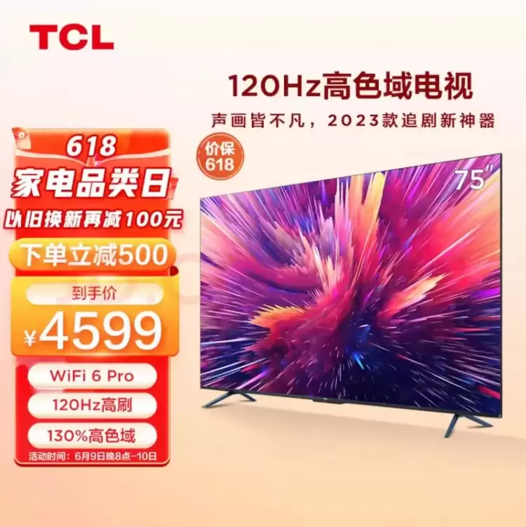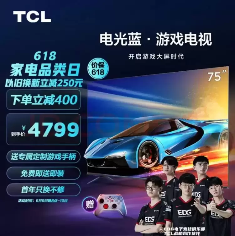 618期间TCL V8E MAX起售价仅2399,下单立减400元,首年只换不修,免费即送即装,还免费送定制游戏手柄;TCL V8E PRO起售价仅2199,下单立减400-500元,以旧换新再减100元,喜欢玩游戏的你还在等什么?