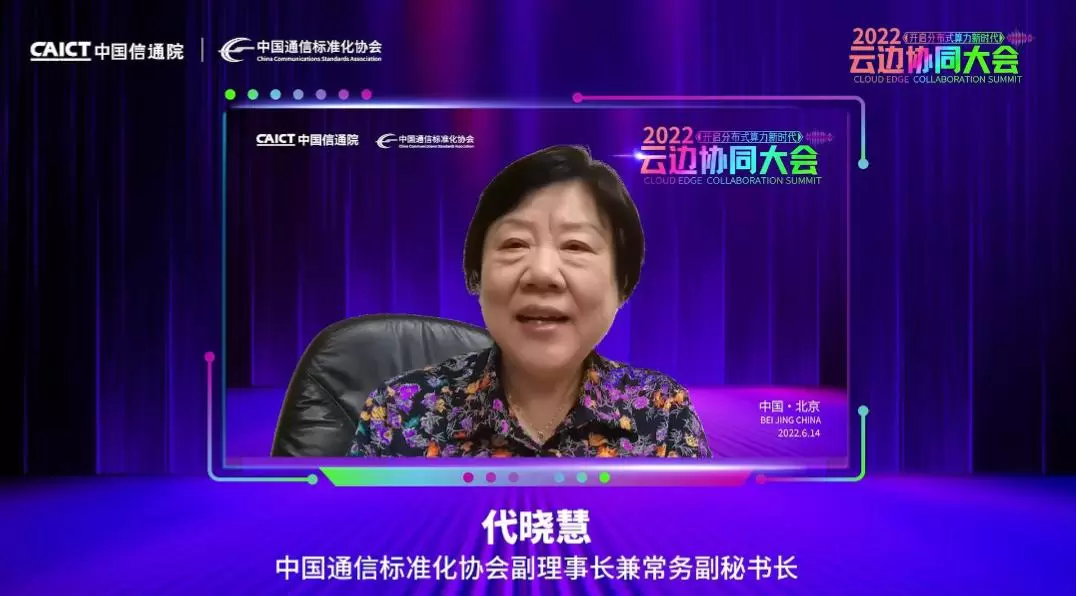 2022年6月14日,由中国信息通信研究院(以下简称“中国信通院”)、中国通信标准化协会联合主办的“2022云边协同大会”以线上方式顺利召开。中国工程院院士邬江兴出席并进行主旨发言,中国通信标准化协会副理事长兼常务副秘书长代晓慧参会并致辞。会上,中国信通院重磅发布《分布式云发展白皮书》、《边缘计算市场和用户洞察报告(2022)和《云边端一体化发展报告(2022)》等白皮书和研究报告,公布了业界关注的2022云边协同最新评估结果、2022分布式云与云边协同创新实践案例结果,开启最新的“云边X”计划,并对云边协同产业方阵突出贡献专家进行了表彰。
