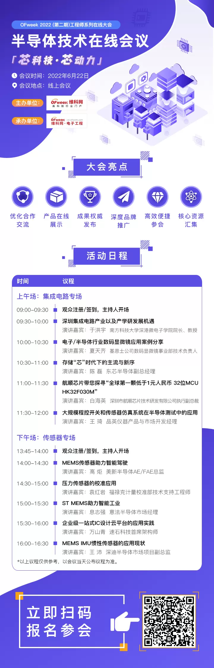 更多精彩内容请扫码预约「OFweek 2022 (第二期)工程师系列在线大会——半导体技术在线会议」,敬请期待!