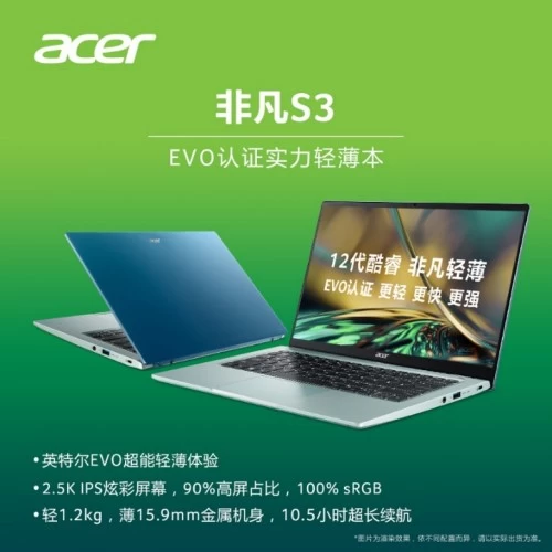 多彩的青春充满活力,自由的灵魂往往寻求个性的自我表达,宏碁12代热门轻薄本产品非凡S3在616宏碁品牌日特惠登场。1.25KG轻15.9mm薄的纤细机身搭配个性的配色,展现新锐态度,12代英特尔酷睿处理器创新的异构设计搭配Xe锐炬核心显卡搭配双铜管、风扇的强大散热系统,为自由挥洒灵感,享受日常娱乐提供强劲动能;此外全新升级的2.5K分辨率约90%屏占比的高素质屏幕带来绝美色彩表现;同时卓越的轻薄体验也通过Evo严苛认证,为年轻用户打造一台实力轻薄本。