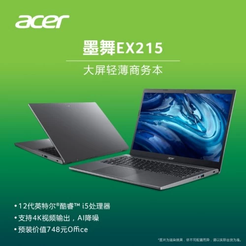 新时代的商务场景多变,一款能够满足多种需求的的笔记本,成为商务人士的不二选择。墨舞EX215支持最新的12代英特尔酷睿处理器与英伟达MX550移动显卡,提供强劲的生产力;双内存插槽搭配PCIe 4.0 SSD加HDD双硬盘位的强大扩展能力,为使用者带来稳定高效的办公体验;15.6英寸大屏幕以及HDMI、RJ45网线与三个USB3.2的丰富商务接口,结合采用Acer TNR技术的高清摄像头,打造出拥有完美移动办公能力的实用商务本。