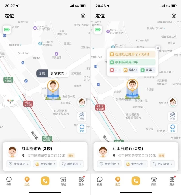 在买小天才旗舰Z8之前,我上网看到不少家长有评论市面上很多电话手表的室内定位都不准,比如商场定位,除了一个大概的地址之外,连楼层都没法识别。那会儿我心里有点慌,生怕Z8也是这样,拿到电话手表后立马带孩子去家附近商场测试。