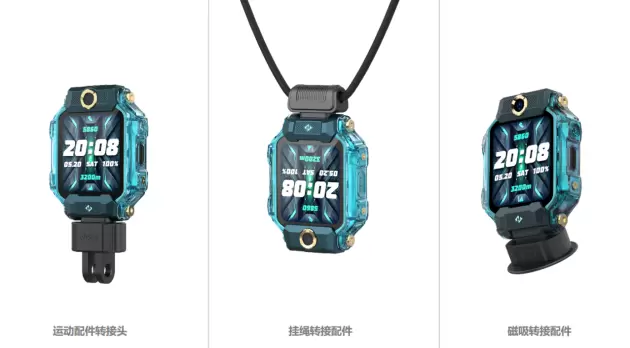有一个设计挺让人惊讶的,我没想到小天才电话手表真会玩,玩起了“分体结构”,即表盘可以从表体中“摘”下来,设计新颖,这种机械美学相当罕见。我看官方有挂绳转接配件、磁吸转接配件,当时索性也给孩子买了,方便佩戴在脖子上、踩单车的时候可以吸附在头盔上,装饰也好,记录也罢,一种产品有多种形态的变化,设计的确巧妙。
