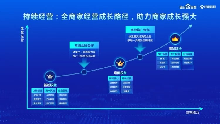 相较于拥有更多资源的大型企业,如何经营获客是中小商家在实操过程中面临的一大难点,而这恰是百度的平台价值所在,百度本地生活通过整合流量场景,推出本地会员和本地推广两大产品,构建起全商家经营成长路径,助力商家成长强大。