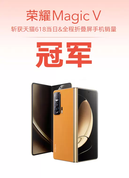 荣耀在618创造的一连串“数字”所代表的意义不止于销量,更蕴藏了荣耀背后强大的技术力量。其中,荣耀Magic V作为荣耀双轮驱动极致产品主义观的集大成之作,让用户对折叠屏手机产生了新的认识。为打造真正的折叠无缝和轻薄手感,荣耀Magic V搭载了荣耀自研的超薄悬浮水滴铰链,消除了折叠产生的超大缝隙,大幅度降低了折叠屏的机身厚度;为了解决折叠旗舰场景使用痛点,荣耀Magic V搭载由Magic Live智慧引擎使能的AI全场景智慧操作系统Magic UI 6.0,可以满足原本在Pad、PC、直板机上的移动体验,以创新科技赋能生活。