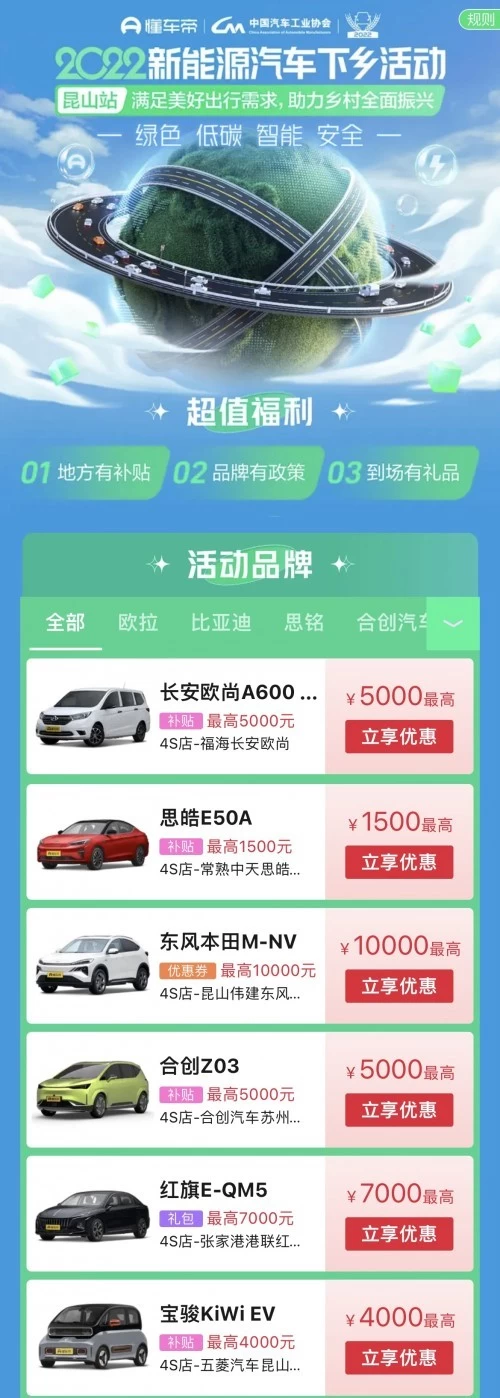 2022年新能源汽车下乡活动首站启动,上懂车帝可享购车优惠