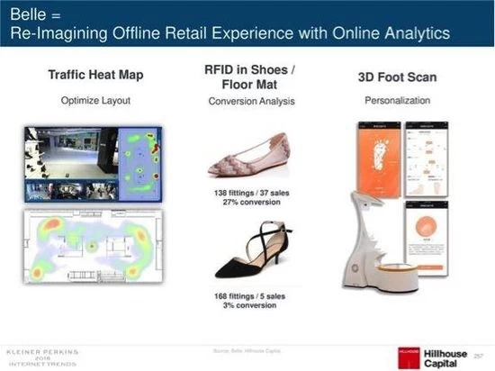 据悉,百丽国际与地平线的合作由来已久。今年5月,互联网女皇玛丽·米克尔发布了2018年度《互联网趋势报告》,其中就提到了地平线和百丽的落地合作案例。