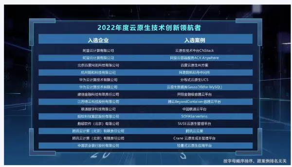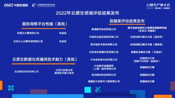 为推动我国云原生领域快速健康发展,让云原生技术有准可依,本次大会发布了云原生领域的最新评估结果、云原生服务标准体系等研究成果,作为云原生领域的领航者,联通云云原生平台通过了“基于金融场景的大规模容器性能评估”。同时,为拓展云原生技术应用范围,引领云原生领域技术风向,鼓励云原生新锐企业发展,构建健康繁荣的云原生生态,会上还公布了云原生应用优秀案例、云原生技术创新解决方案或产品、云原生安全优秀案例和云原生新锐企业四大类共45个云原生优秀案例。其中,“中国联通云平台”入选“2022年度云原生技术创新领航者”名单。