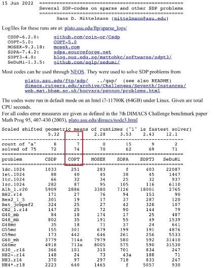 COPT 5.0 新增加SDP求解器,位列榜单第一