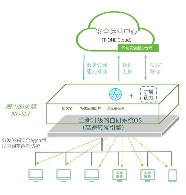 高级安全事件层出不穷、攻击手段不断调整变化,如何持续保障企业的业务安全是值得所有安全厂商思考的。T-ONE CLOUD承载了绿盟科技八大安全实验室的数据积累、安全运营的攻防实战积累,创造出更多、更新的安全产品服务,形成云端的安全能力仓库,而绿盟科技魔力防火墙作为T-ONE CLOUD的边缘侧设备,将云端安全能力仓库的资源弹性订阅到魔力防火墙上使用,让魔力防火墙上的安全能力始终保持是最新的状态。