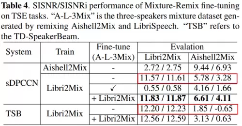 在Libri2Mix和Aishell2Mix构建的英文-中文跨域目标语音分离任务上,文中提出的Mixture-Remix机制不管在sDPCCN还是经典的TD-SpeakerBeam(TSB)结构上都体现出了显著效果。