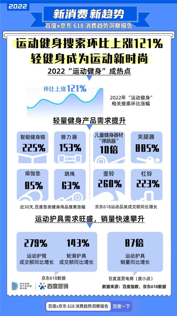 在刚刚结束的618大促,健康消费成为了一个备受关注的热门话题。根据近日公布的《618消费趋势洞察报告》,“运动健身”相关内容搜索环比上涨121%。与此同时,各类健身产品的关注度亦增长明显,其中“智能健身镜”搜索上涨225%,FITURE等品牌更是在本次促销过程中迎来了产品销量的一波大幅提升。
