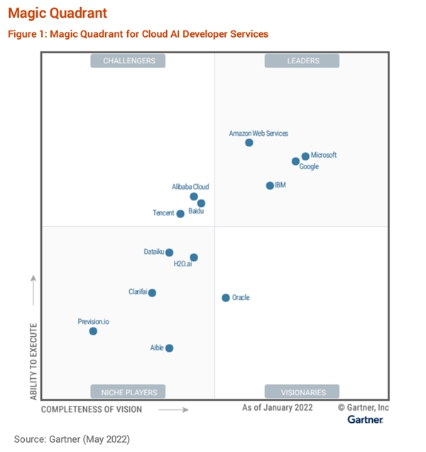 日前,国际权威研究机构Gartner发布2022年《云AI开发者服务魔力象限》。