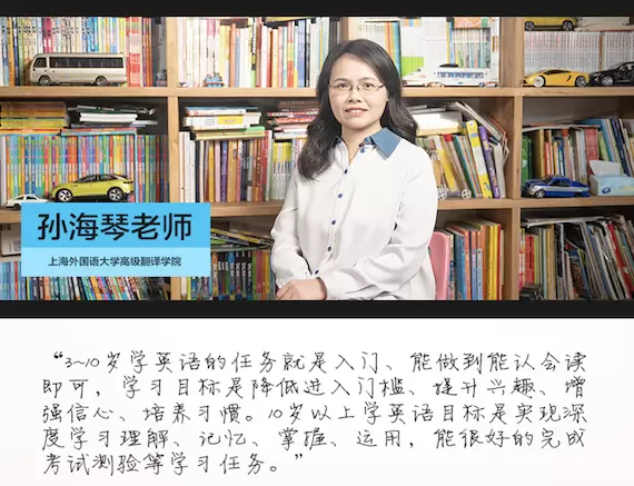 孙海琴老师认为,3-10岁学英语的任务就是入门、能做到能认会读即可,学习目标是降低进入门槛、提升兴趣、增强信心、培养习惯。10岁以上学英语目标是实现深度学习、理解、记忆、掌握、运用,能很好地完成考试测验等学习任务。