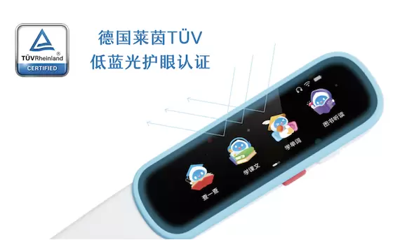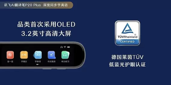 考虑到低学龄儿童生理特点,讯飞AI翻译笔P20在字体字号选择、排版设计上与教材保持一致,使用了经过德国莱茵TÜV低蓝光权威认证的护眼屏幕,充分保护孩子视力。