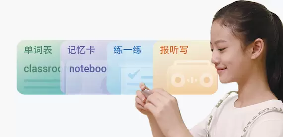 讯飞AI翻译笔P20还开发了记忆卡片模式,融合图片、文字、声音的趣味翻转卡片,可让孩子在互动中趣味记单词,专注且高效。