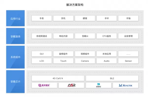 据了解,针对智能穿戴设备,OneOS制定了一站式完整解决方案。在端侧,OneOS从底层解耦硬件,让研发人员从繁琐的硬件适配工作中解放出来;在应用层,OneOS除了提供穿戴基础组件如GUI、音视频等,还整合了如视频通话、音频内容、AI语音助手等穿戴特色应用服务,使客户可以达到开箱即用或少量定制即可完成软件闭环设计。