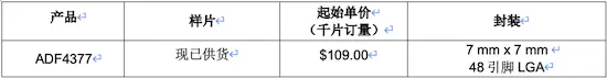 · 下载数据手册、申请样片和订购评估板:http://www.analog.com/cn/Pr220622/ADF4377