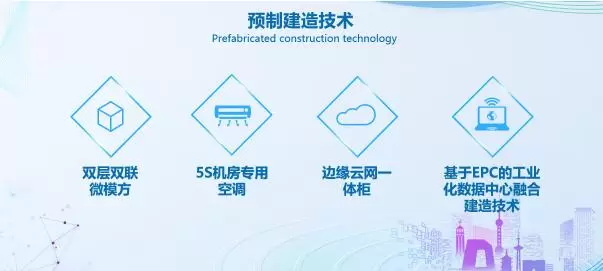 预制建造技术。采用全栈建设理念,自主研发多款数据中心智能硬件产品,结合“基于EPC的工业化数据中心融合建造技术”攻克了传统数据中心建设周期长,需求匹配差,节能效率低的难题。“双层双联微模方”是100%自主研发的数据中心智能硬件产品,获得7项发明专利和3项实新专利授权,具有“多快好省,即装即用”的优势,入选《国家通信业节能技术产品推荐目录(2021)》、获得中国移动第十九届科技进步与业务服务创新奖-产品开发奖金奖。“5S机房专用空调”针对机房局部热点问题开发,具有更节省(Save)、更静音(Silent)、更小巧(Small)、更可靠(Safe)、更智能(Smart)特点,与现有精密空调相比,占地面积可节约40%左右,室外机噪声降低5~8dB,PUE最低可达1.25,获得1项发明专利和3项实新专利授权。“边缘云网一体柜”是100%自主研发的边缘数据中心智能硬件产品,产品入选中国移动核心能力及自主产品清单,中国移动百大科技成果;“融合建造技术”,打造方案标准化、产品预制化、交付总成化、管理平台化、运维智能化五大能力,获得中国工程建设标准化协会2021年数据中心科技奖三等奖,并写入《数据中心基础设施建设项目工程总承包管理标准》团标。