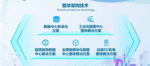 整体架构技术。创新提出应对不同需求的数据中心解决方案,产出涉及制冷系统、供电系统、智能控制等全方位的技术架构,解决数据中心技术点零散的问题。其中“数据中心标准化方案”历经5代演进,单机架面积最低至5.71平米,设计PUE最低至1.211,装机效率、绿色节能、成本控制业界领先。近三年,设计技术向外输出,先后中标大疆科技数据中心项目、中科曙光成都超算项目、阿里巴巴南通数据中心、国家电投贵安数据中心项目,其中阿里巴巴南通数据中心项目规模达到39万平米。“工业化数据中心整体解决方案”建设周期较传统模式缩短约50%,PUE值在全国大部分地区均达到1.25以下,严寒寒冷地区可达1.2以下,获得中国电子节能技术协会“2021年云计算中心科技奖卓越奖”,已在辽宁、内蒙古、湖北、北京等地应用,其中辽宁铁岭数据中心利用废旧厂房“变废为宝”,短短6个月完成项目交付。“全预制模块化整体解决方案”是工业化数据中心整体解决方案系列中的多层方案,采用多层钢结构+预制模块化机房的建设模式,具有建材回收多、建设速度快、节能效果好、土地资源省的优势。